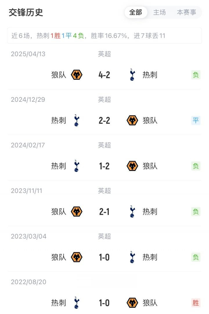 积分榜方面,热刺3胜1平1负积10分,近4场不败;狼队开季5轮连败目前垫底。历史交锋热刺对阵狼队近5场不胜(1平4负)。