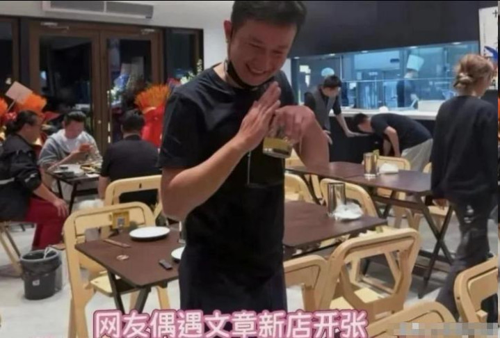 开业当天,文章从中午忙到深夜,端盘子、倒茶水、点单子、收银,手脚麻利得不像当年的顶流。