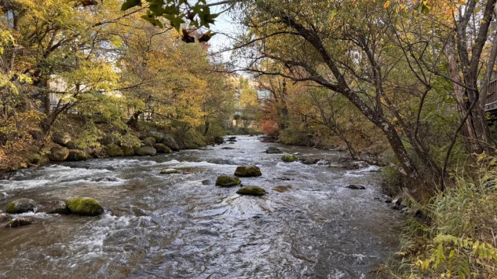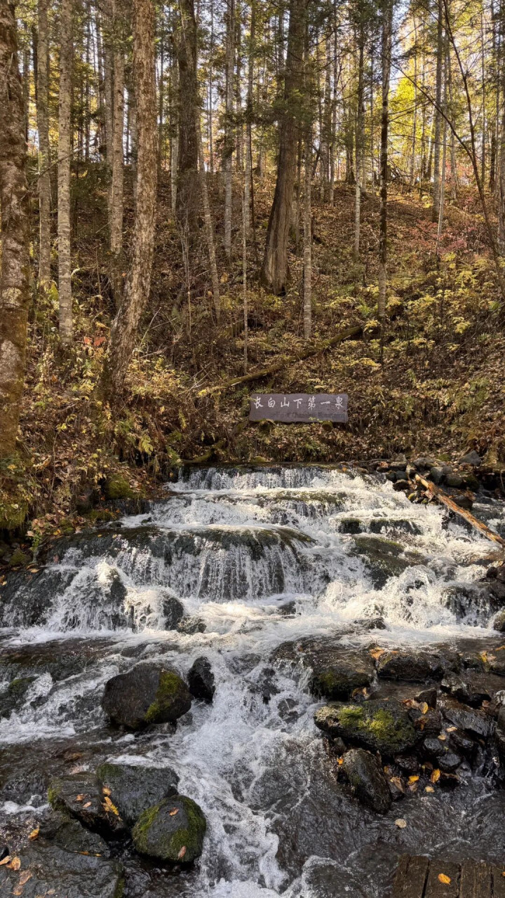 进入公园,顺着栈道慢慢走,每一步都是长白山秋天的韵味。在观景台驻足欣赏公园景色,沟底溪水潺潺,坡上怪石嶙峋,坡顶秋意正浓。