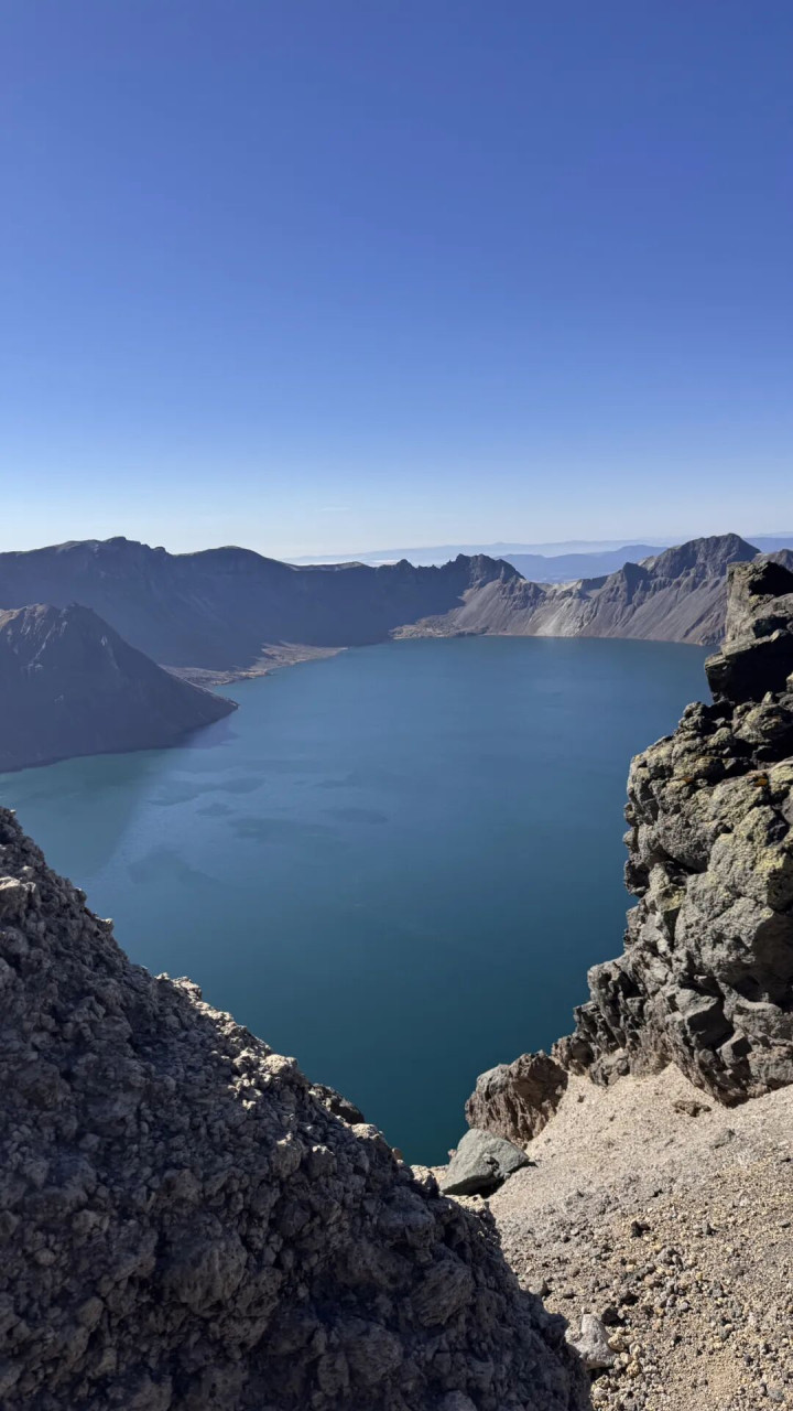 3日一早起床去天池。天气晴朗,一路顺畅。感谢老天眷顾,晴朗的天气把最清晰的天池展现给我们。当地朋友说能否看到天池是要看运气,运气好的人才能看到。当然这只是玩笑说法,我来过三次,三次都看到了,这次看的最清楚。有个大人物来了三次,三次都是阴天大雾,天池藏在雾里,看不到,还赶上下雨,山路湿滑,为了安全天池暂停开放。我当然愿意自己是运气好的那一拨,更明白人胜不了天。小时候觉得人定胜天很自豪很牛×,大了以后慢慢明白,人胜不了天,只能是顺天意做好自己。