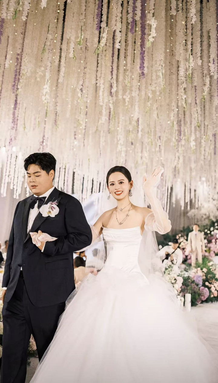 孙坚的弟弟虽然不像他一样帅气,但是五官也很周正,胖胖的让人很有安全感,两人在亲朋好友的簇拥下交换了戒指,说出誓言的那一刻全场欢呼。