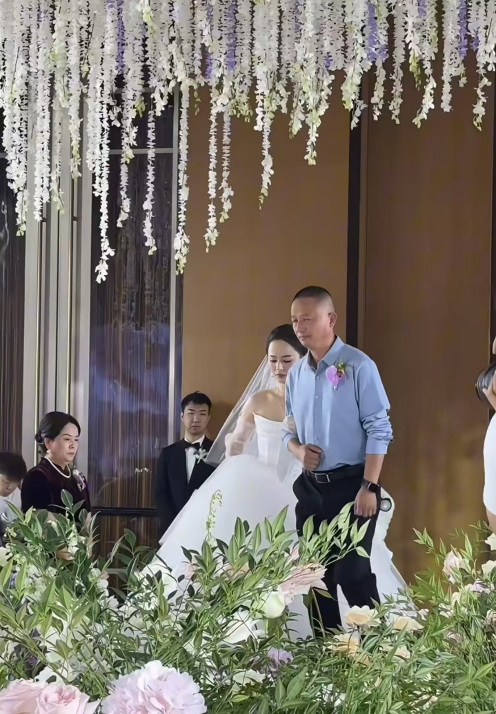 现场摆满了鲜花,站在舞台上就像是置身于花海一样,看着就让人心情愉悦,新娘子很漂亮,五官很大气,脖间佩戴着项链,在父亲的陪伴下一步步走进现场,浑身散发着温柔感,这是她人生中最幸福的时刻之一。